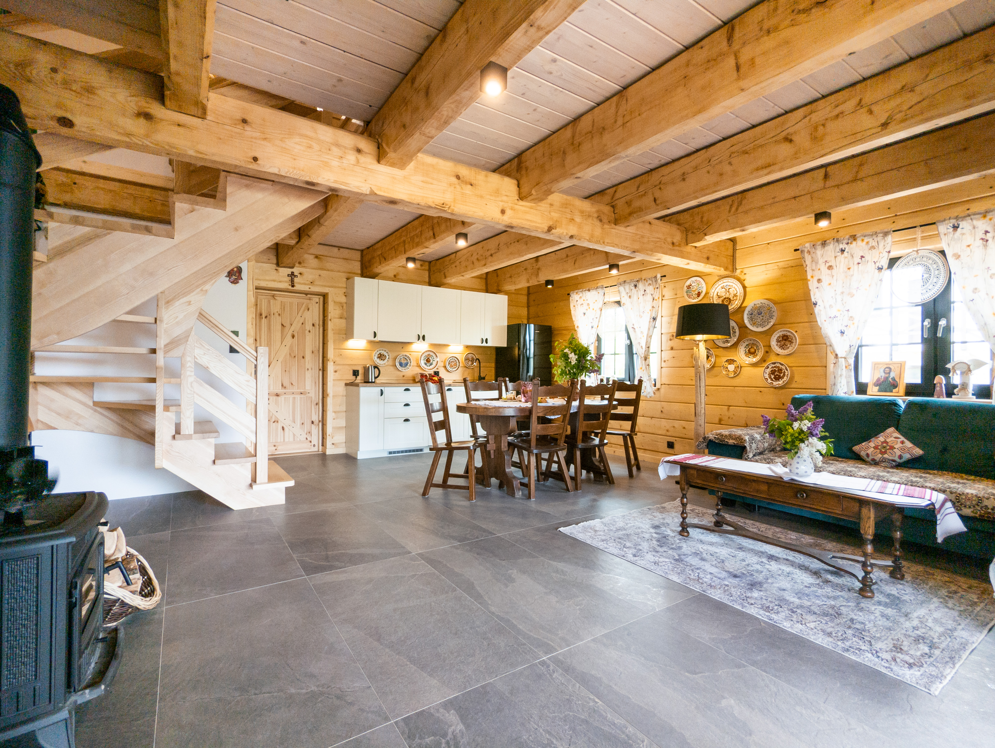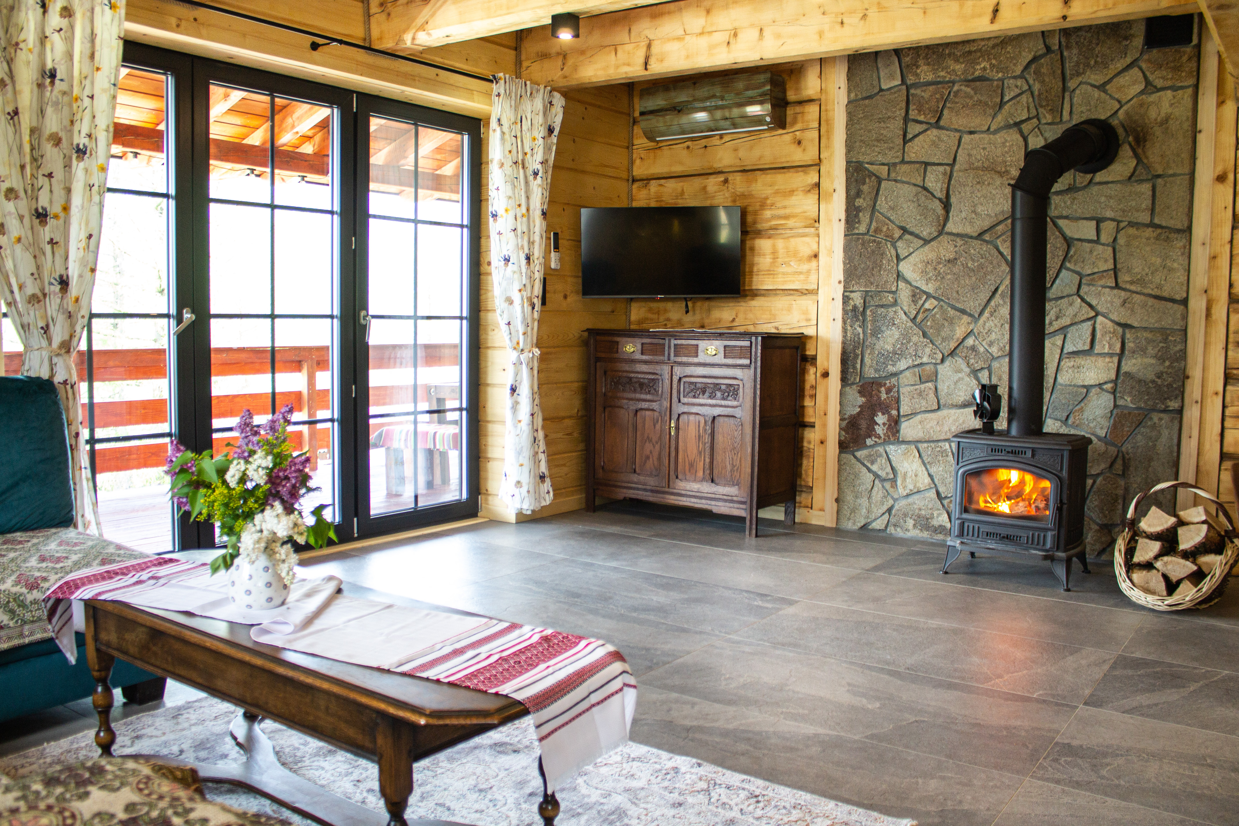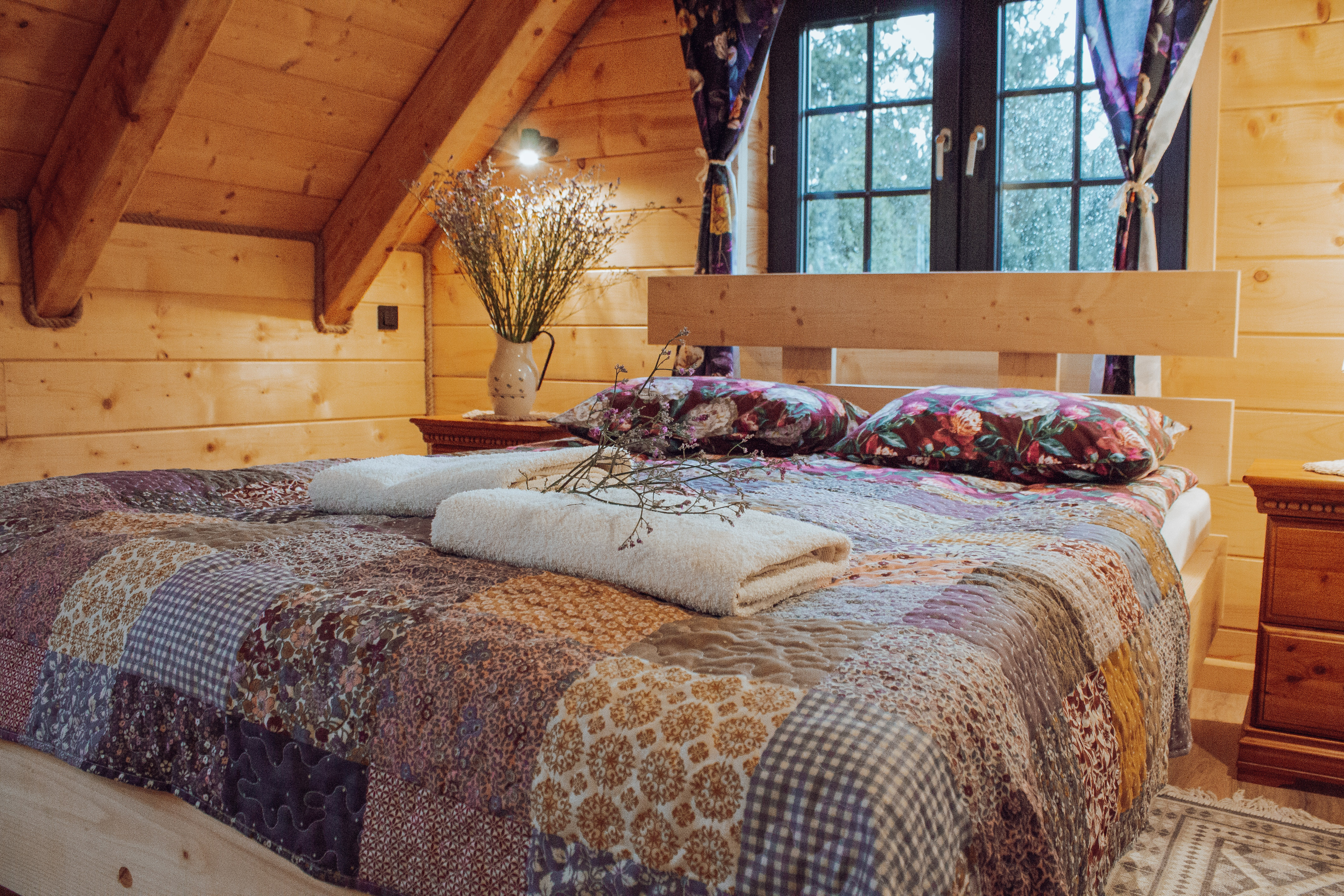 Nasz domek składa się z dwóch oddzielnych apartamentów, co pozwala na swobodne rozplanowanie pobytu dla większej grupy osób. Każdy apartament został gustownie urządzony, z dbałością o detale i wygodę naszych gości. Każdy z apartamentów posiada własną kuchnię, łazienkę oraz przestronny salon, w którym można miło spędzić czas, delektując się przy tym pięknym widokiem za oknem. Obok domku znajduje się miejsce na ognisko.
