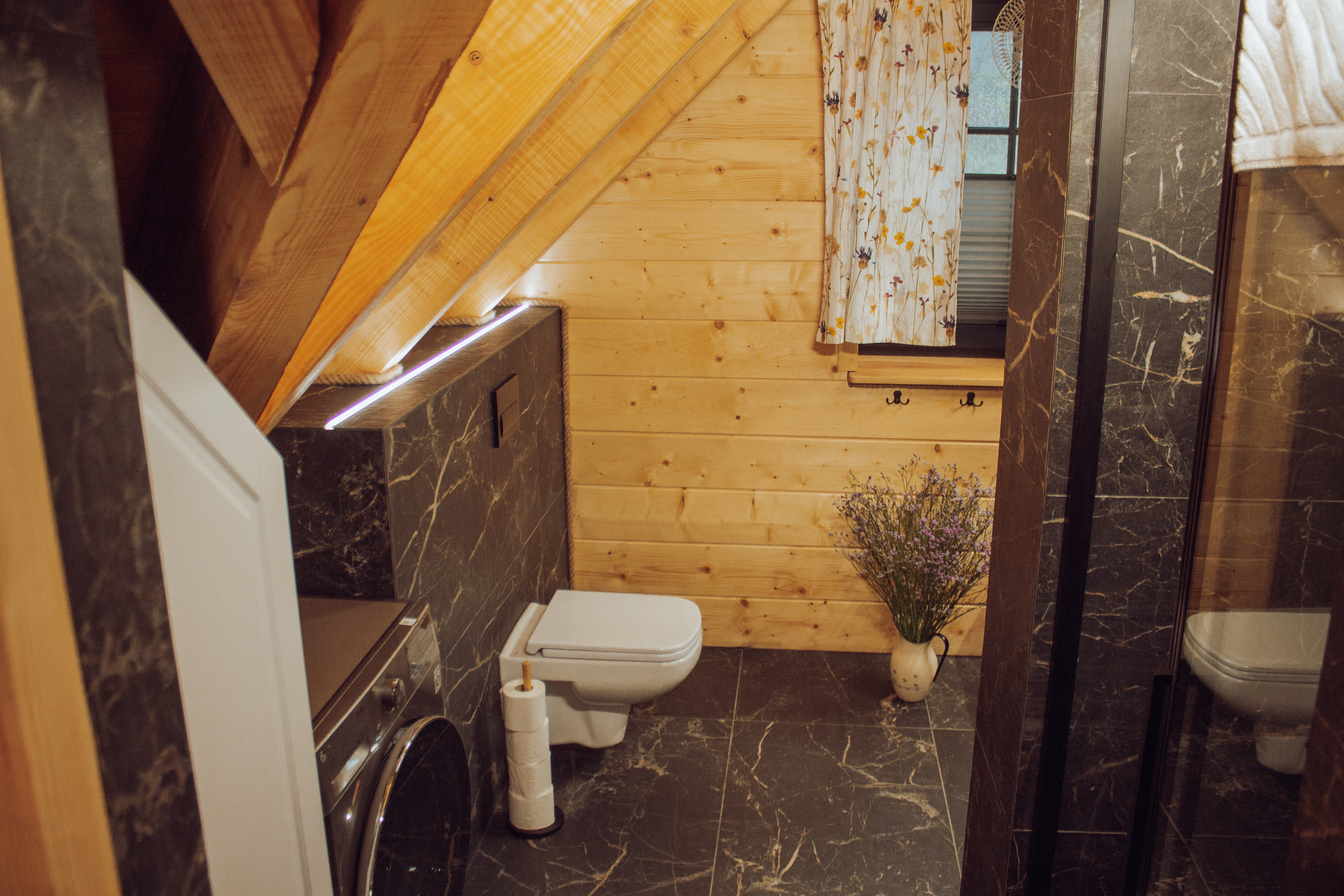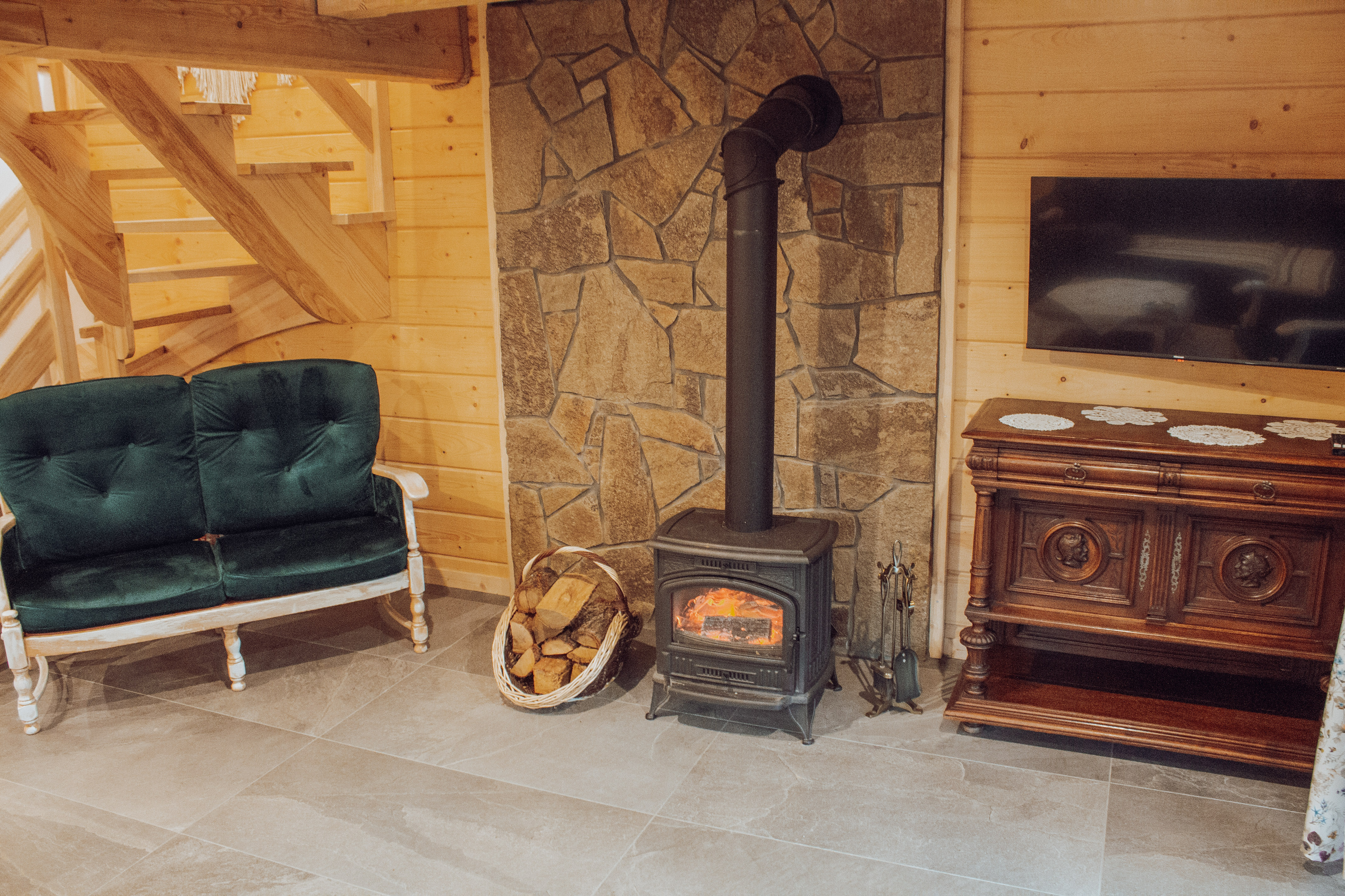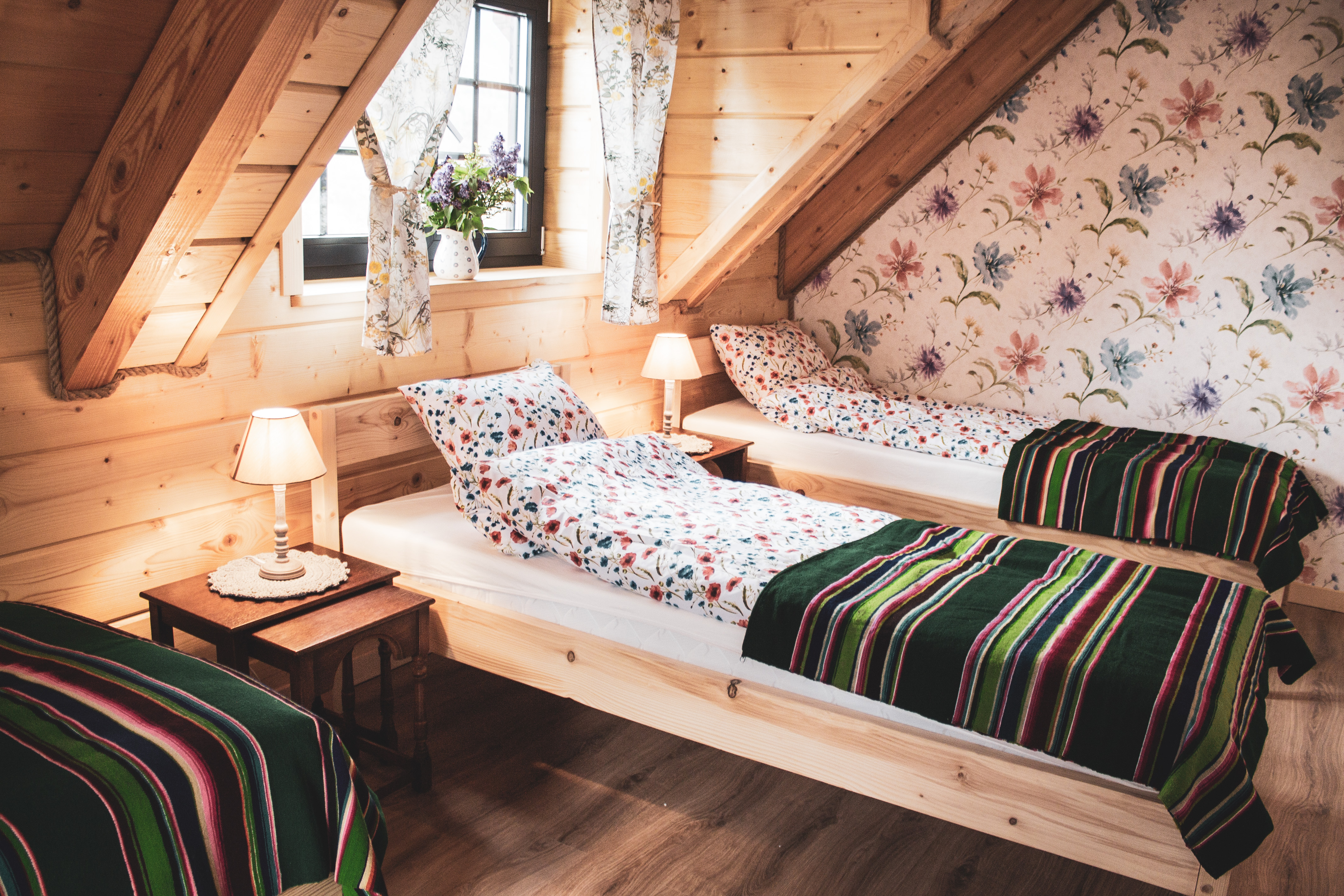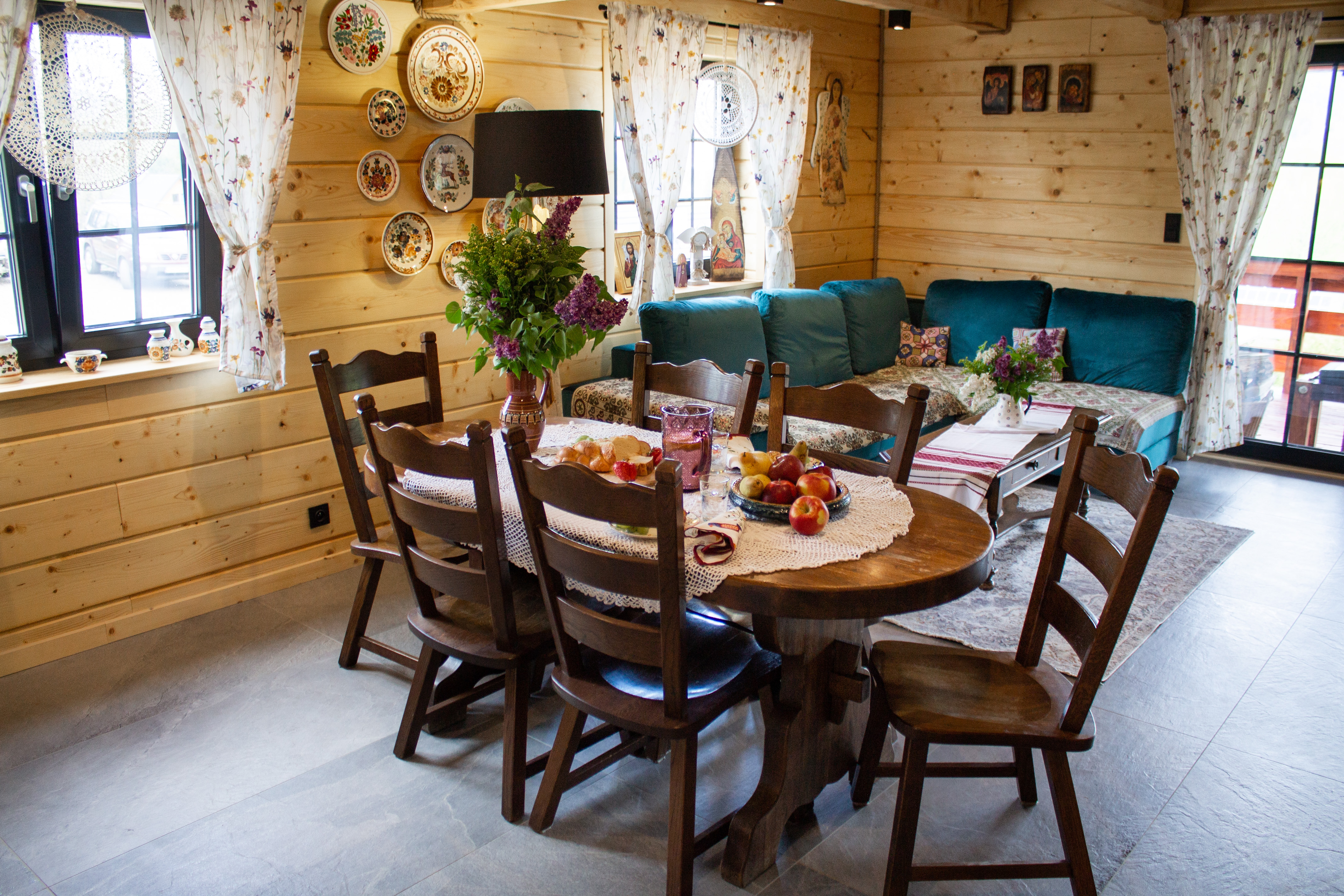 Nasz domek składa się z dwóch oddzielnych apartamentów, co pozwala na swobodne rozplanowanie pobytu dla większej grupy osób. Każdy apartament został gustownie urządzony, z dbałością o detale i wygodę naszych gości. Każdy z apartamentów posiada własną kuchnię, łazienkę oraz przestronny salon, w którym można miło spędzić czas, delektując się przy tym pięknym widokiem za oknem. Obok domku znajduje się miejsce na ognisko.
